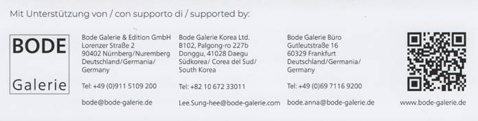 Bode Galerie Korea Ltd. B102 Palgong-ro 227 Dong-gu 41028 Daegu Telefon: +82-10-67233011